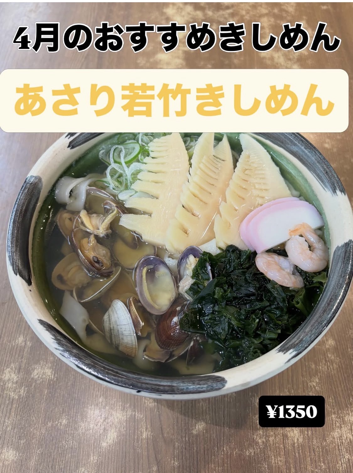 アサリ若竹きしめん1350円